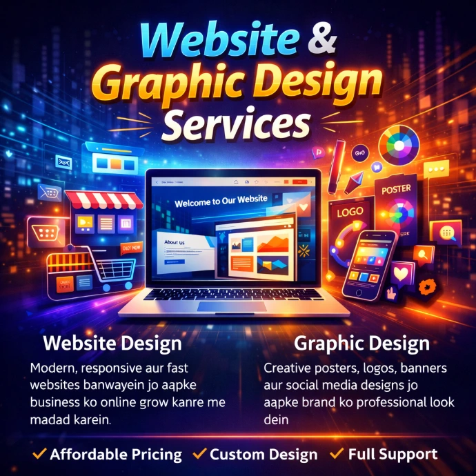 Hum creative aur professional graphic designs banate hain jaise posters, banners, logos aur social media creatives jo aapke brand ko standout karein.